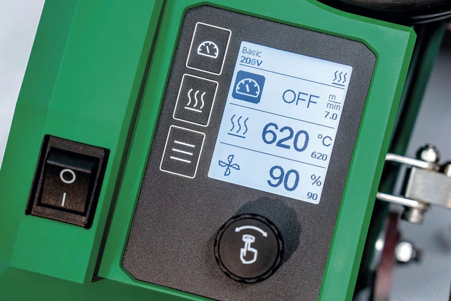 La geometría de la boquilla se ha optimizado para mejorar el flujo de aire y la gestión térmica. En la práctica, esto se traduce en soldaduras más homogéneas, mejor “mojado” del material y una ventana de proceso más amplia, lo que ayuda a mantener el resultado incluso si cambian ligeramente las condiciones de la lona o del entorno.