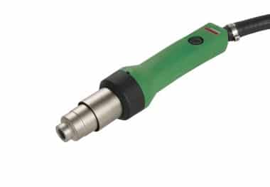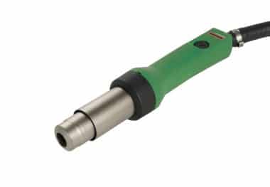 Comparador El aparato manual más pequeño de Leister Temperatura ajustable electrónicamente sin escalas Flujo de aire ajustable electrónicamente sin escalas Silencioso Pie flexible integrado en el aparato El aparato manual más compacto de Leister. El reducido peso de tan sólo 600 gramos, con cable incluído, y el pequeño mango facilitan el