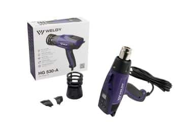 ComparadorAñadir al carrito 111,81€ El secador de aire caliente HG 330-A de Weldy es un soplador de aire caliente excepcionalmente potente y fácil de usar. El cómodo secador de aire caliente es ideal para un incontable número de aplicaciones, entre ellas el recubrimiento de vehículos. La temperatura de trabajo puede elegirse en pasos de